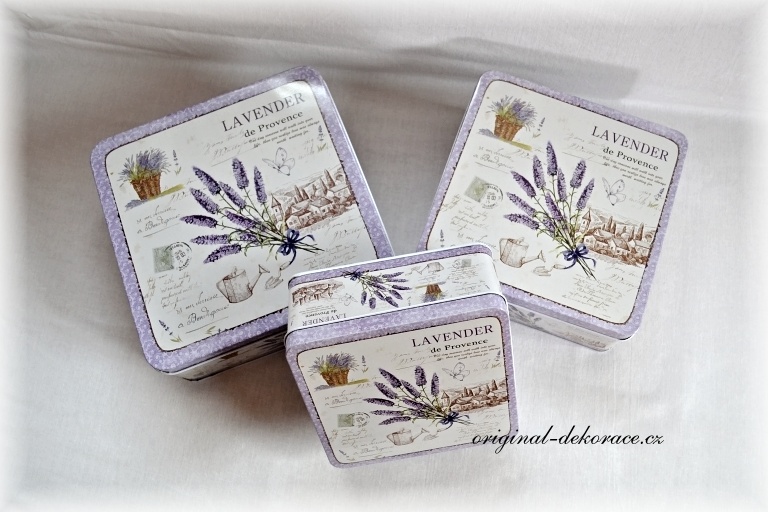 - Plechové dozy s levandulí, hranaté (nízké) - sada 3 ks - levandule R